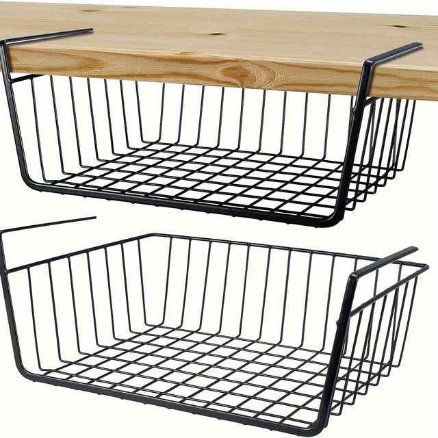 Curated kitchen storage rack for handpicked organization. This under-cabinet hanging basket is a versatile and layered solution for wardrobe, wall cabinet, and general kitchen organization.