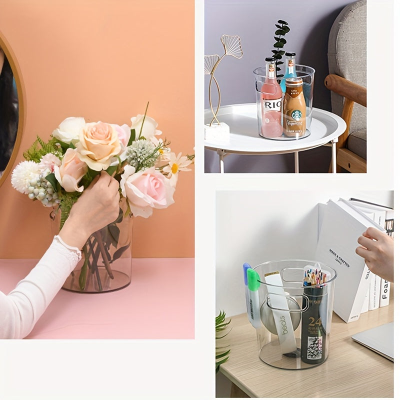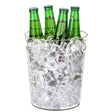Curated plastic ice bucket for handpicked chilling of champagne, beverages, soda, and beer. Multi-use clear bucket doubles as a vase, flower pot, or trash bin.