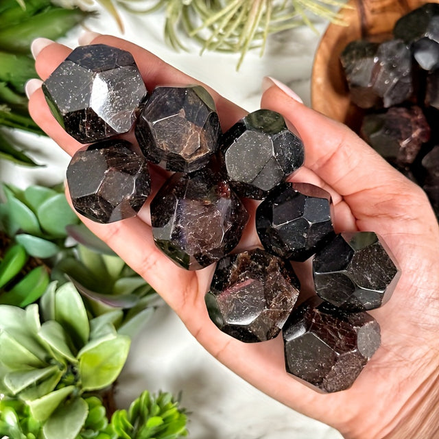 Curated garnet stone ornaments—natural crystal decorations with irregular cracks, perfect for home décor and gifts.