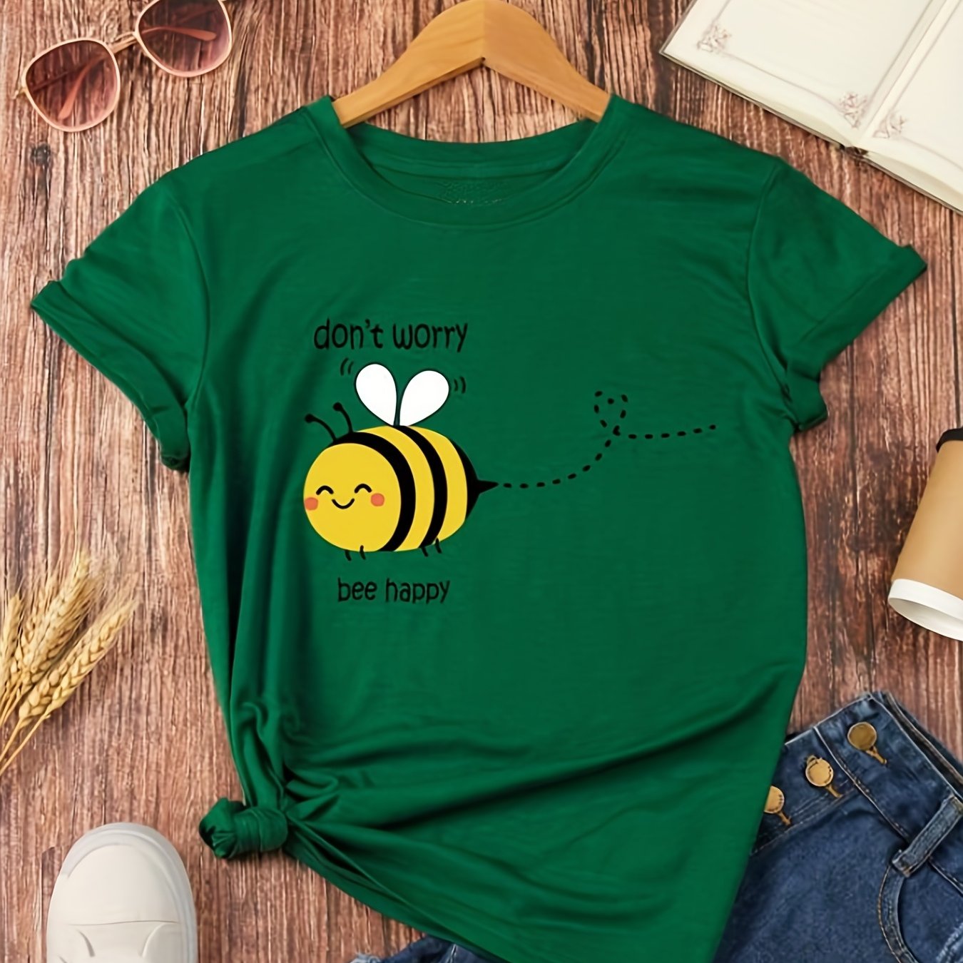 Cute Bee Print T-shirt, Casual Crew Neck Short Sleeve T-shirt, Women's Clothing - Green / S(4) is backordered and will ship as soon as it is back in stock.