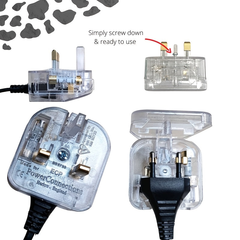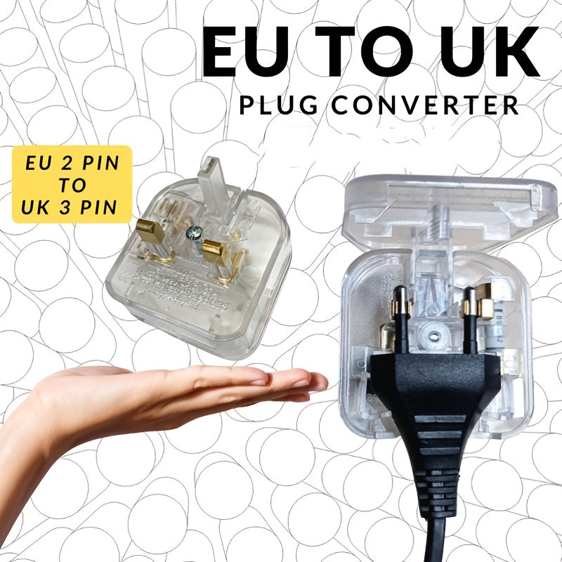 Curated transparent EU to UK plug converter—empower your travel with a fused power solution.
