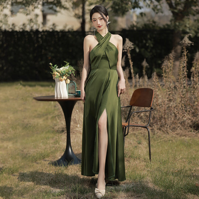 Elegance in simplicity! This green long dress is a solid color statement, available in long and medium lengths. Sizes XS to 2XL ensure a perfect fit. Elevate your style for that special occasion.