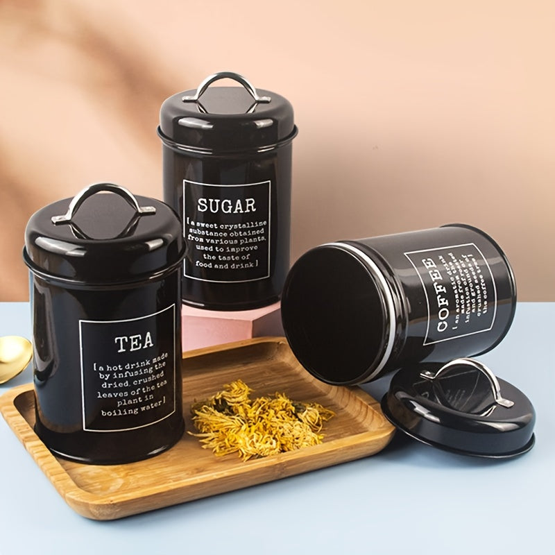 Set of 3 black storage containers for coffee, milk powder, tea, candy, and more, with sealing rings.