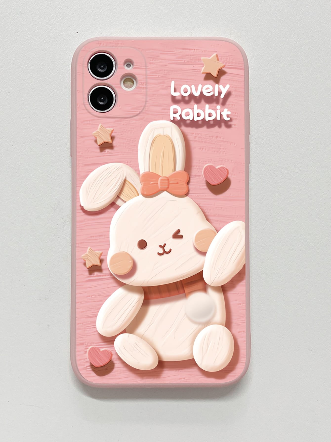 Adorn your phone with charm – Baby Pink TPU case featuring a delightful cartoon rabbit design.