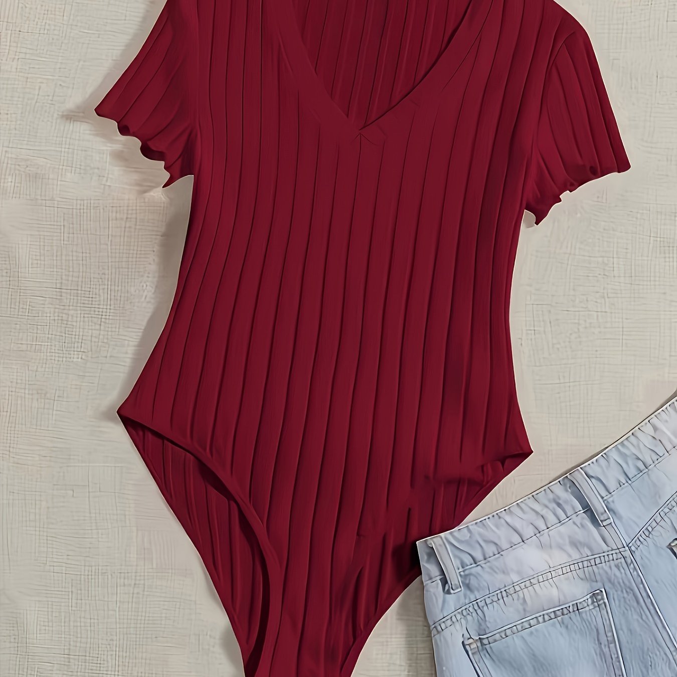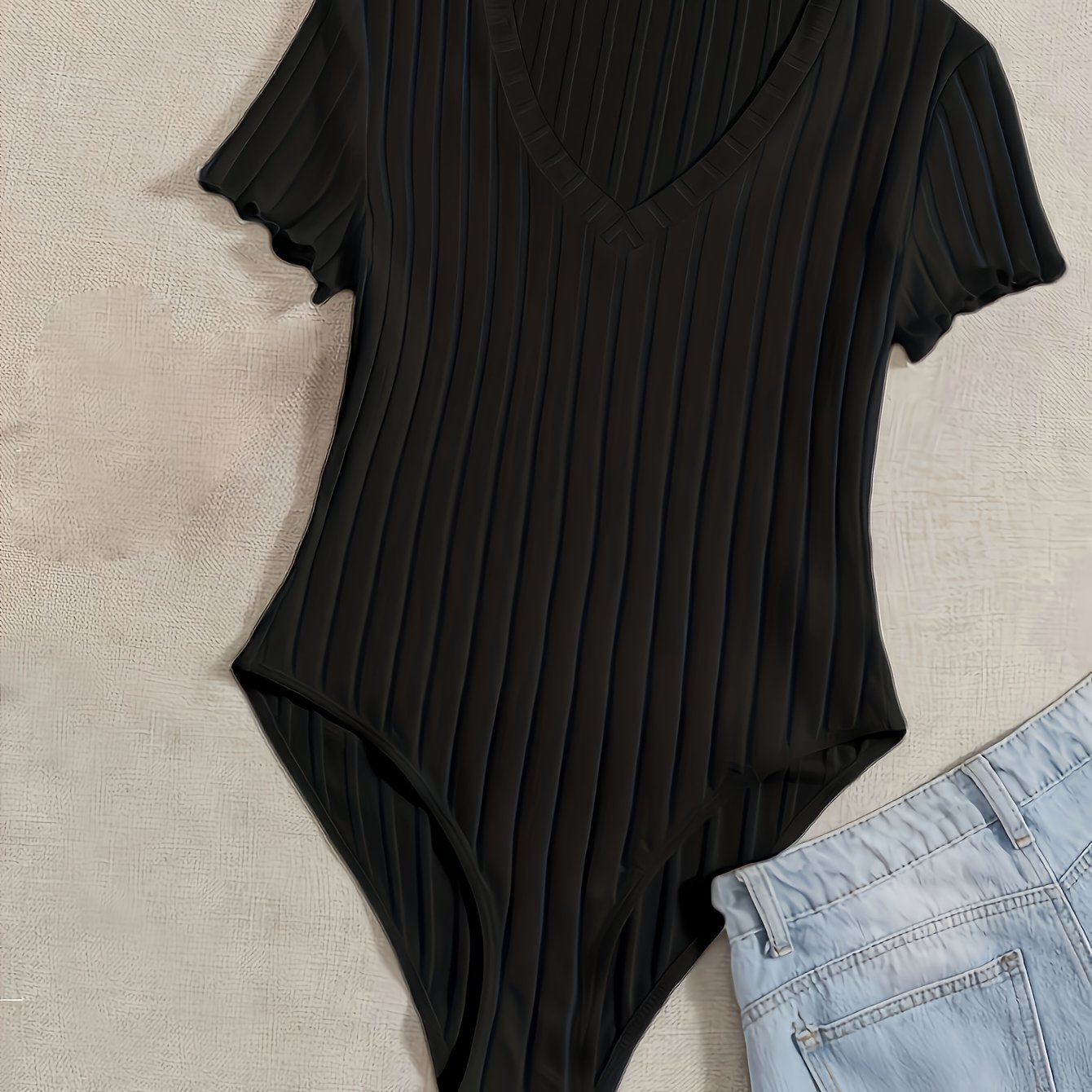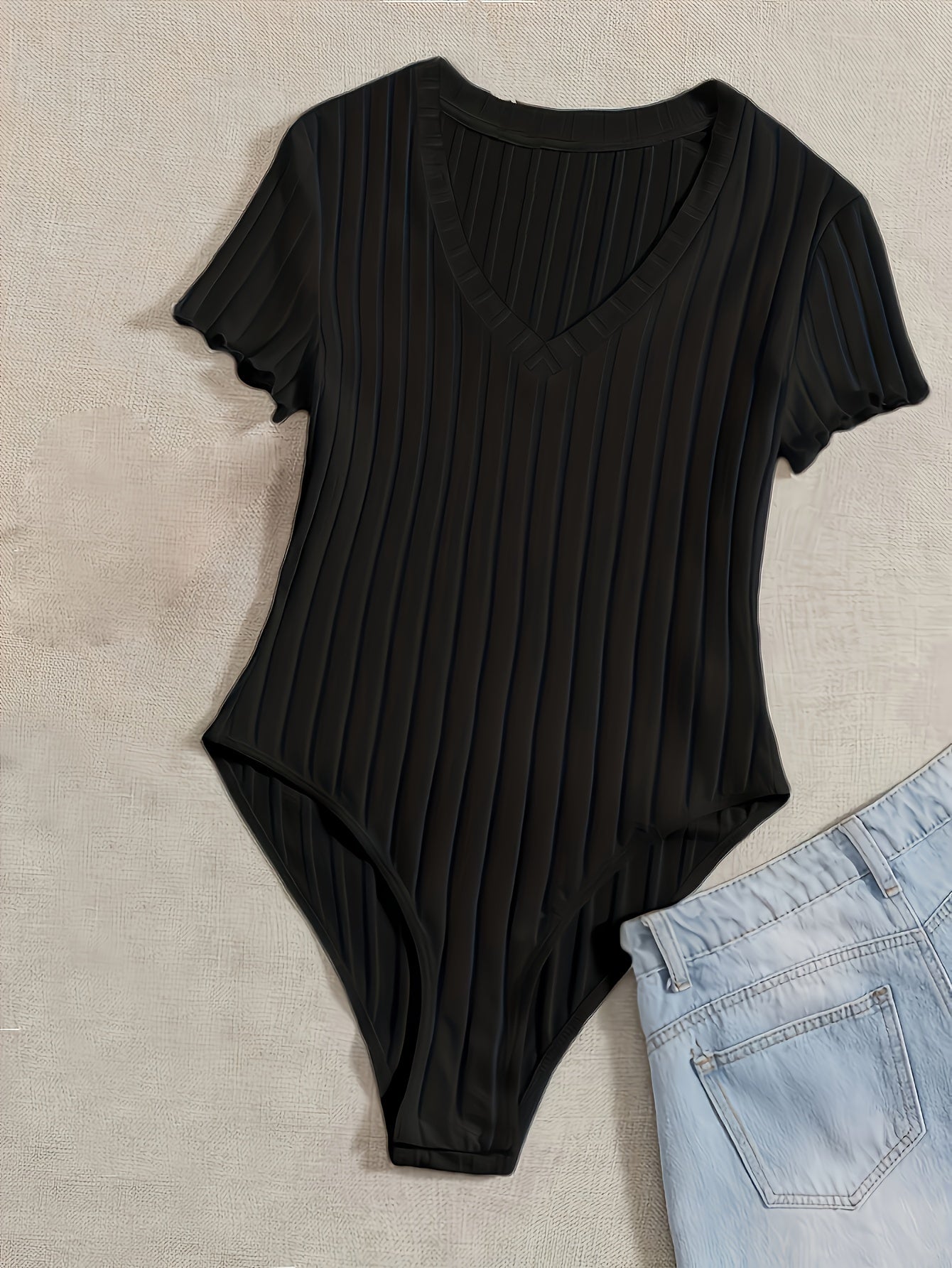 Ribbed V Neck Bodysuit