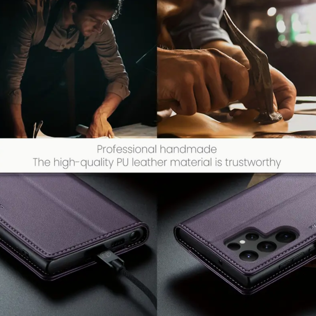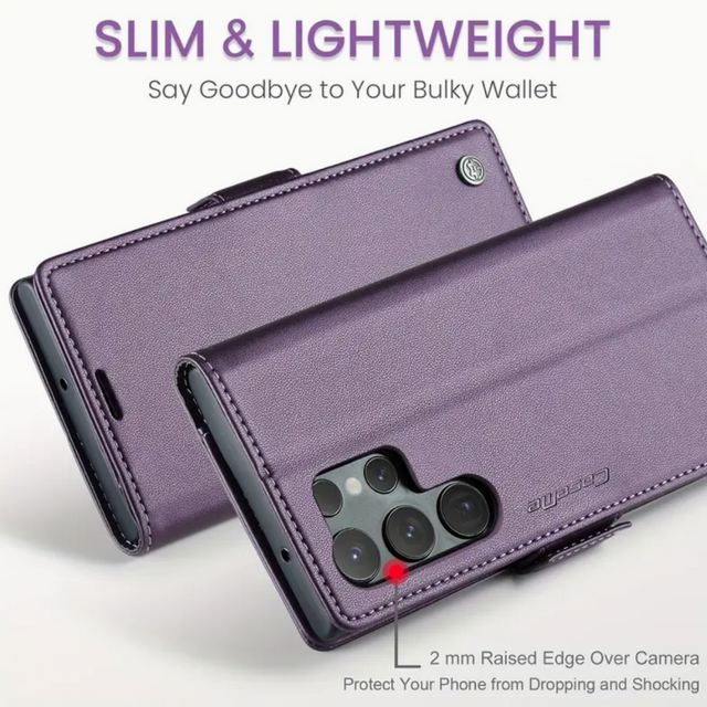 Curated for protection and convenience: wallet case with RFID blocking for Samsung Galaxy.