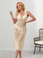 Solid Color Elegant Cover Up Dress, Round Neck Geometric Pattern Hollow Out Split Beach Dress Without Bikini, Women's Swimwear & Clothing - Apricot / S(4) is backordered and will ship as soon as it is back in stock.