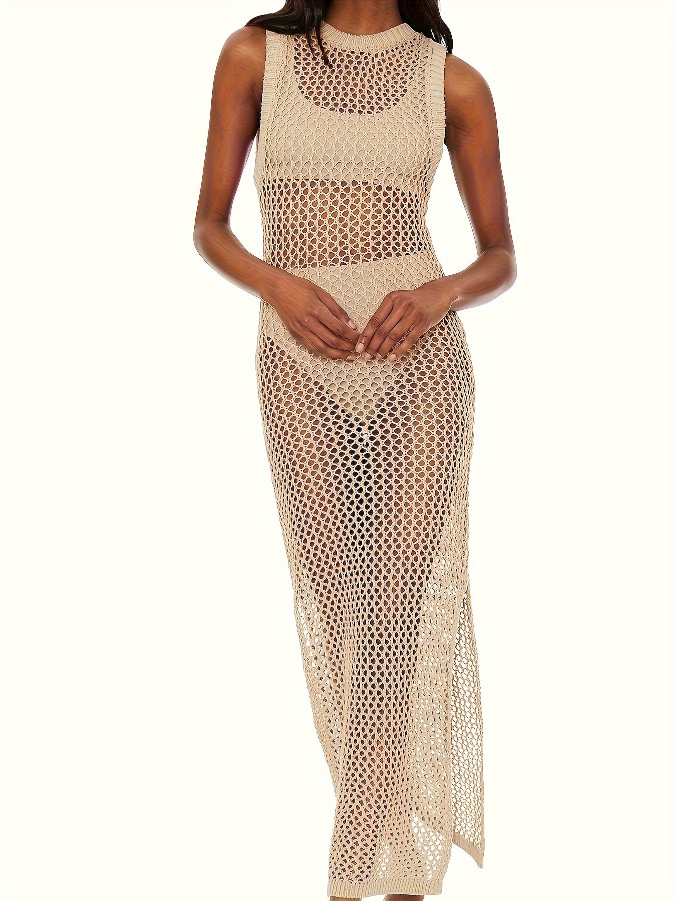 Elevate your beach style with our Solid Color Sleeveless Cover Up Dress – a handpicked, curated piece designed for an elegant beach ensemble. Without a bikini, this dress features a round neck, backless style, and hollow-out split, making it a must-have for your swimwear and clothing collection, ensuring sophistication with a touch of allure.