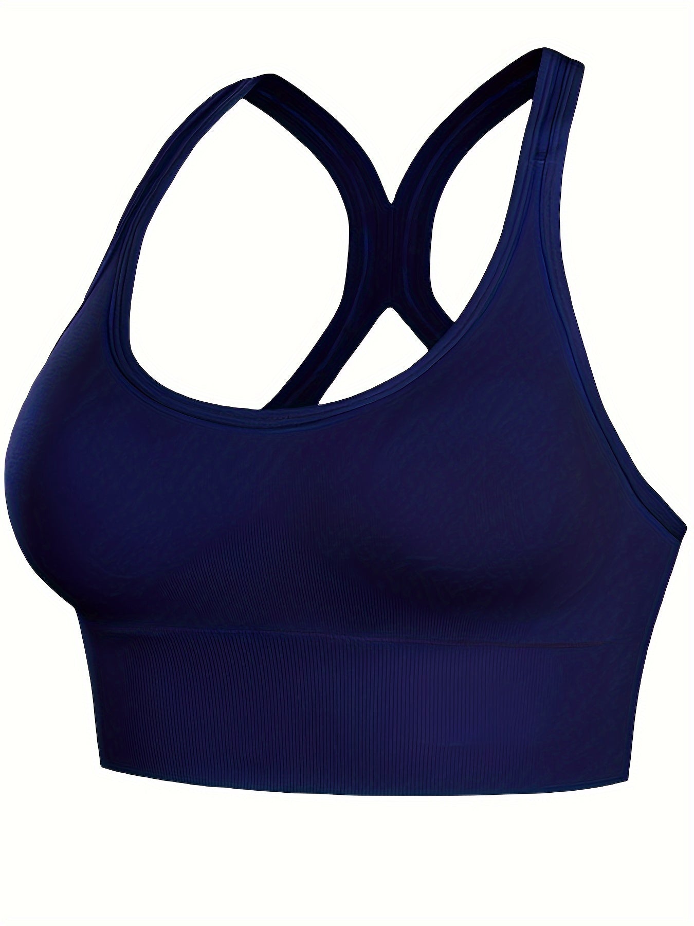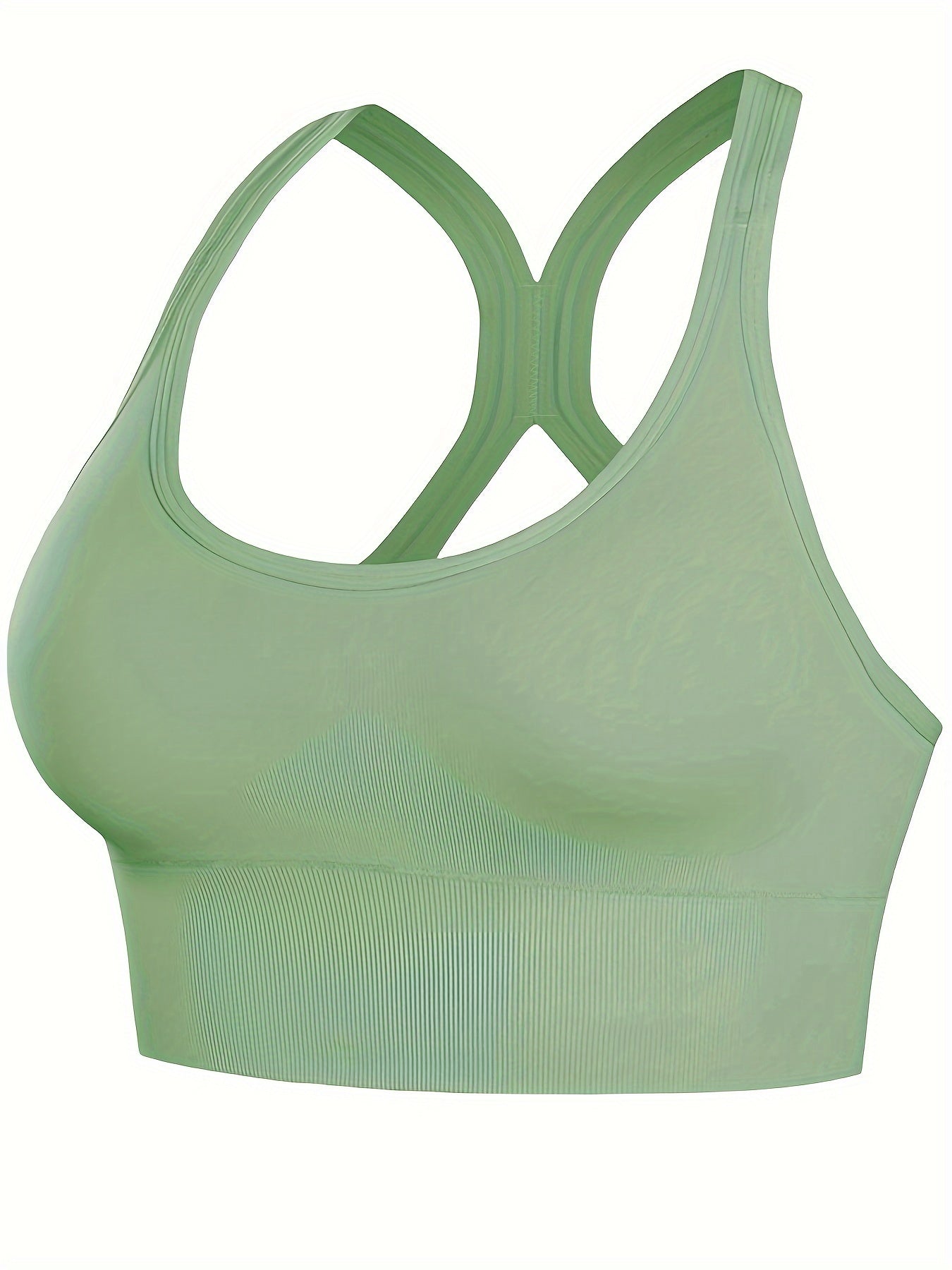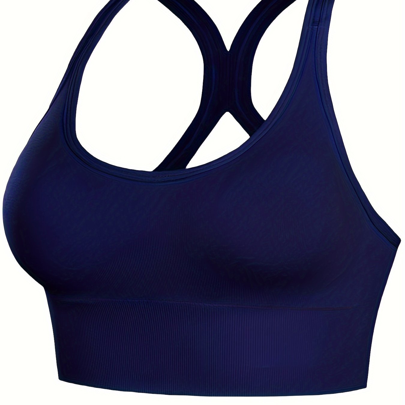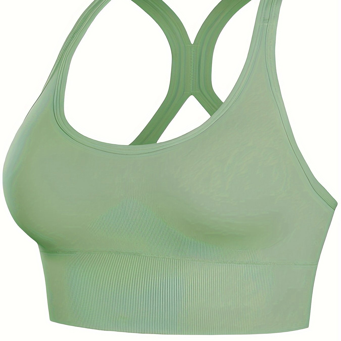 Solid Sports Bra, Comfy & Breathable Push Up Shockproof Fitness Bra, Women's Lingerie & Underwear