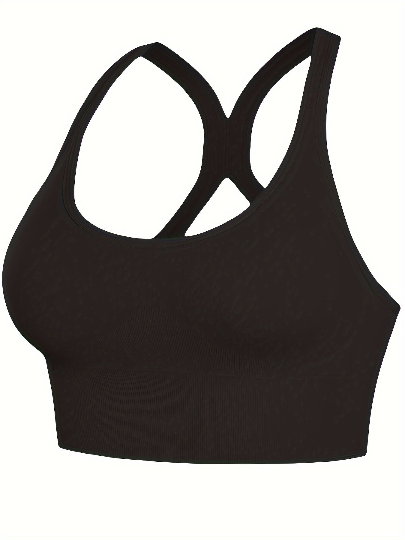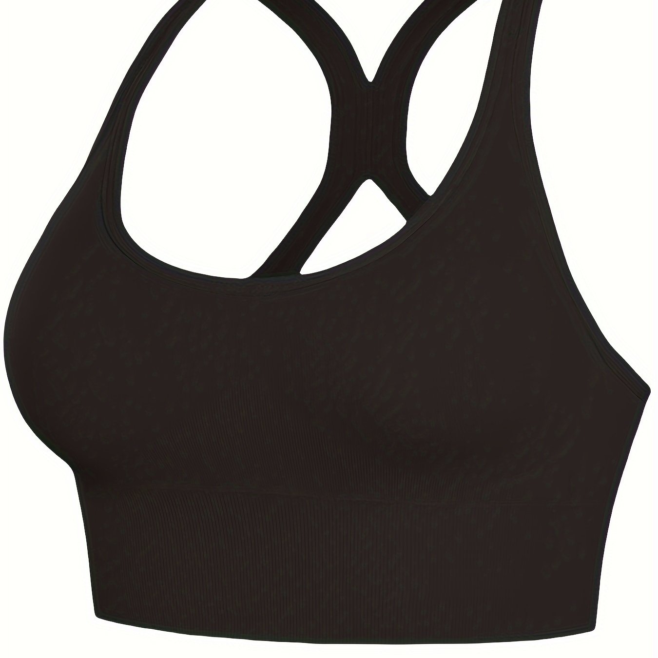 Solid Sports Bra, Comfy & Breathable Push Up Shockproof Fitness Bra, Women's Lingerie & Underwear - Black / S is backordered and will ship as soon as it is back in stock.