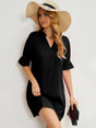 Solid V Neck Dress, Casual Short Sleeve Dress For Spring & Summer, Women's Clothing - Black / S(4) is backordered and will ship as soon as it is back in stock.