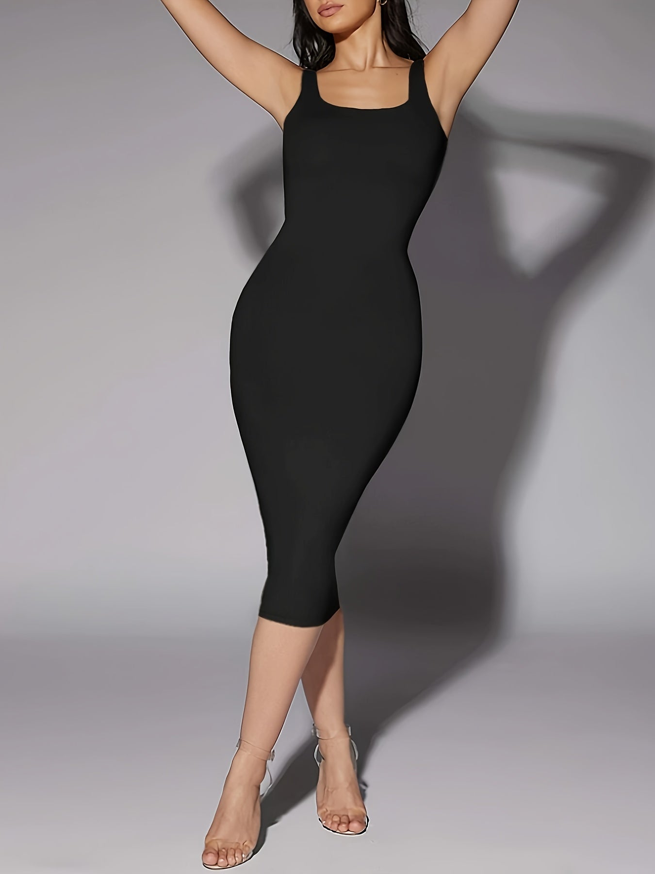 Square Neck Slim Tank Dress - Black / S is backordered and will ship as soon as it is back in stock.