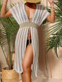 Curated for vacation elegance, our tie-front crochet coverup dress with short sleeves is the epitome of chic beachwear for women's clothing during your getaway.